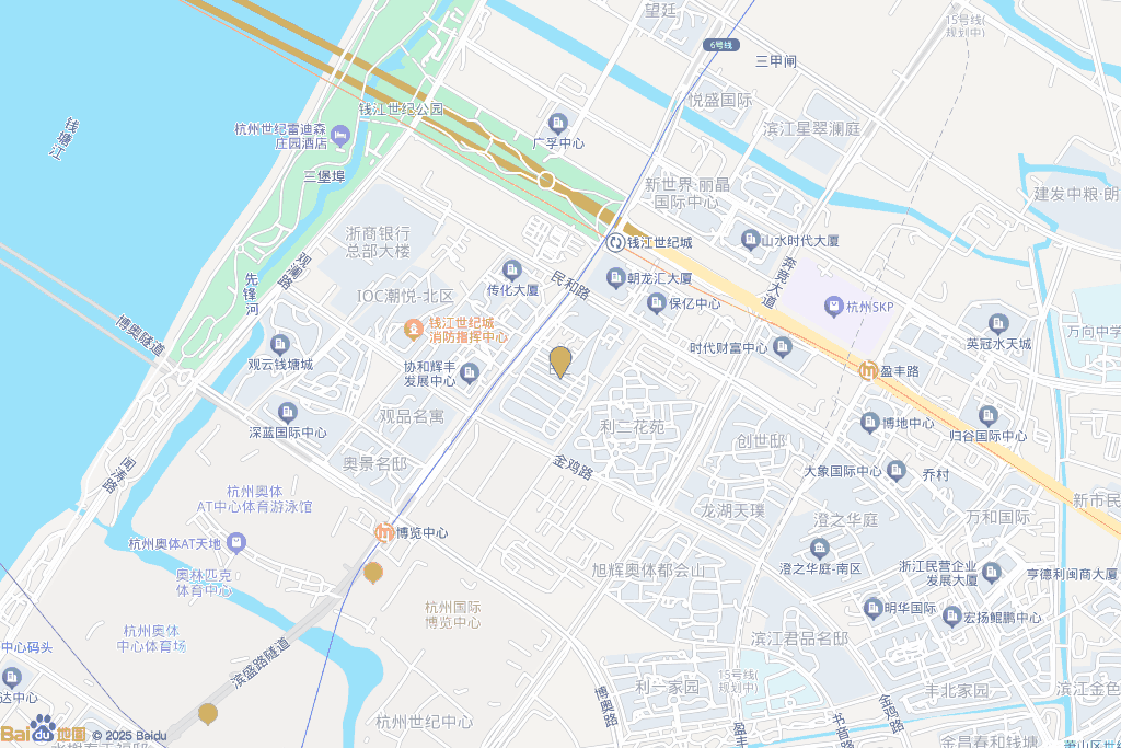 二横(奔竟、机场快速路)、三纵(钱江二桥、三桥、四桥)、三隧道(庆春隧道、望江、博奥隧道)、三地铁(地铁2、6、7号线)最近2号线,200米钱江世纪城站)
