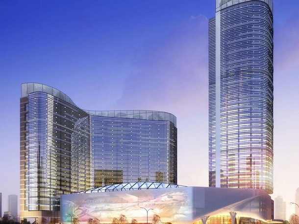 英冠水天城地处钱江世纪城E-11地块,东临广场路,西南临公园东路,北临盈丰中心小学,区域位置比邻奥体中心。根据任务书要求,建成后的英冠.水天城将集酒店、写字楼、精品商业于一体,在如此众多的外部条件下,城市建筑综合体的概念便应运而生。这是功能的综合、形式的综合、环境的综合。