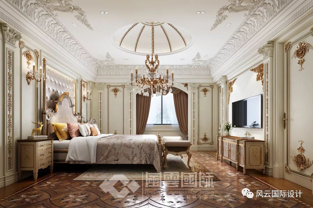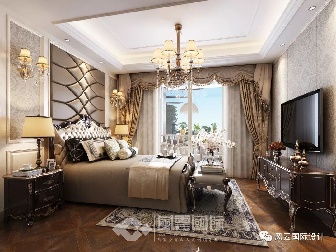 卧作为相对私密的空间配以水晶吊灯,更显富丽堂皇的宫廷气质。以华丽的装饰、浓烈的色彩、精美的造型达到华贵的装饰效果,卧室从顶部设计到家具的搭配,再到灯饰的选择,无一不是精雕细琢,豪华大气,柔美雅致。一种富丽堂皇的感觉扑面而来,打造了一种贵族的风采。