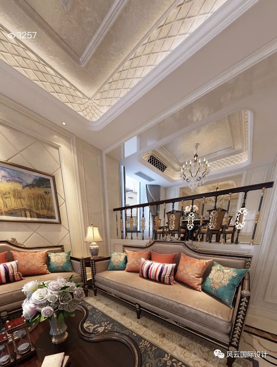 客厅讲究的是舒适性、功能性与品质需求,通过吊顶、线条、墙面材质、地砖花纹为空间搭建出奢华大气的视觉骨架,经典的欧式平绒沙发、水晶做的吊灯、华丽的缎面窗帘等陈设饰品的点缀,让待客空间更显和谐贵气。