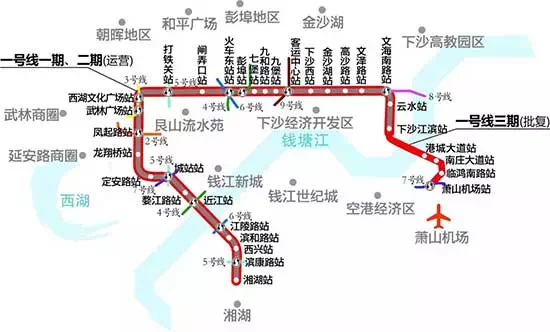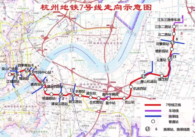 奥体中心、萧山机场等重要站点