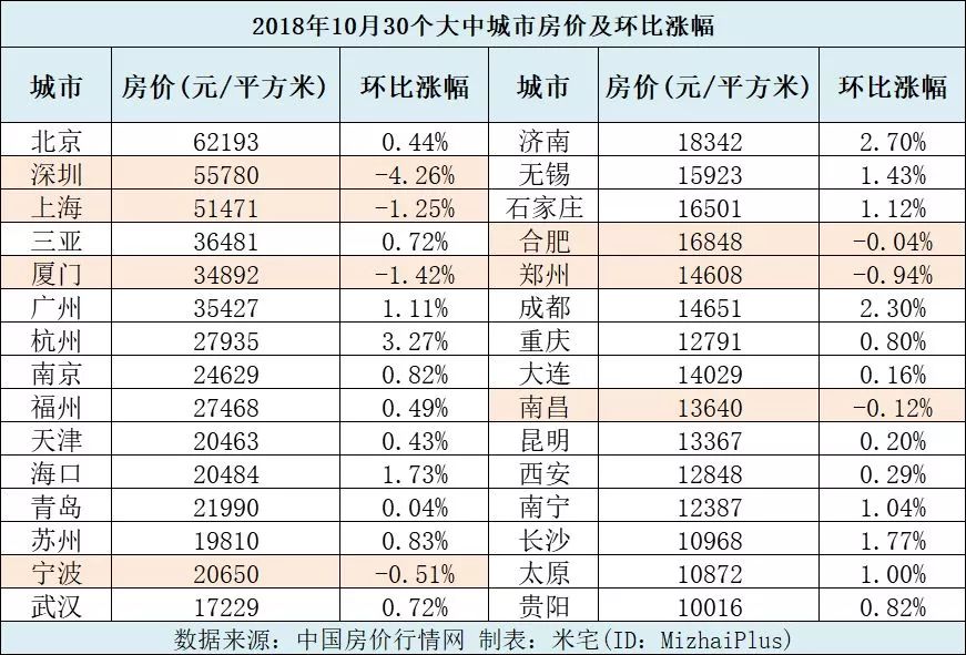 本文来源于米宅(ID: MizhaiPlus),转载请注明来源 前言: 每月初,米宅将发布热点城市房价地图,包括:北京、上海、广州、深圳、天津、杭州、宁波、成都、重庆、武汉、南京、苏州、无锡、大连、青岛、昆明、三亚、合肥、海口、济南、福州、厦门、石家庄、太原、西安、长沙、郑州、南昌、贵阳、南宁、粤