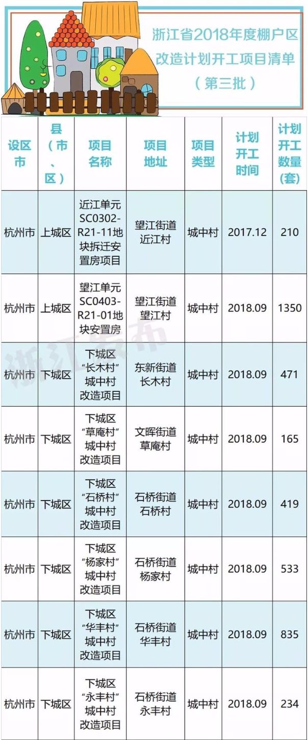 《浙江省2018年度棚户区改造计划开工项目清单》