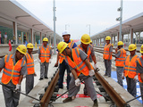 历时140多天铺设的杭台高铁全线铺轨贯通。
