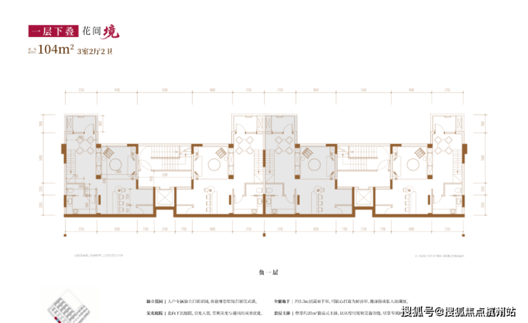 建面约104㎡3房2厅2卫(一层下叠):