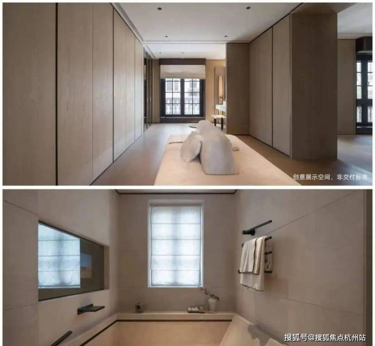 靠户型东侧,样板间设计了一个独立衣帽间和主卧套房的第二个卫浴空间。