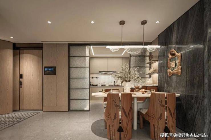 目之所及,细微之处皆有文章。康定壹拾玖的墙面,严选安第斯雪或晓山青珍贵石材,与木饰面、特色定制墙布组合设计,以丰富的层次,营造空间的呼吸感;客厅、餐厅、卫生间等区域地面定制石材,赤足走过,温润细腻的触感。