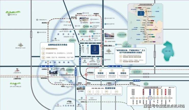 嘉闵线(在建中)可实现2站南翔,6站直达虹桥枢纽,途径十余条轨交(含在建&规划线路),快速通达虹桥枢纽、人民广场、陆家嘴、七宝、莘庄等核心区域。