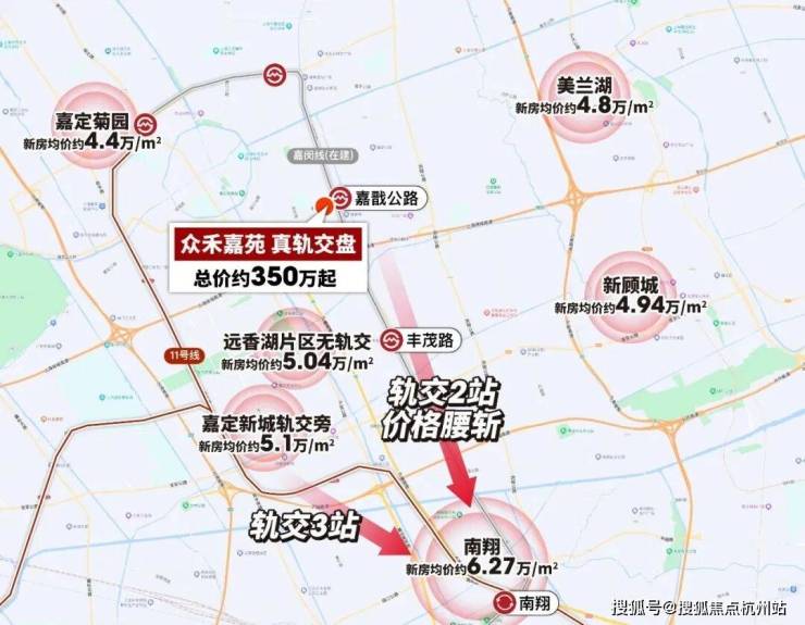 我们对比一下:往南2站的南翔,新房价格已经稳稳站在6万+;同属嘉定新城核心区的理想之地,之前均价5.1万还要抢 。这么一看,众禾嘉苑等于用南翔约三分之二的价格,买到了未来仅多坐4站地铁的通勤便利,性价比一下子就凸显出来了。