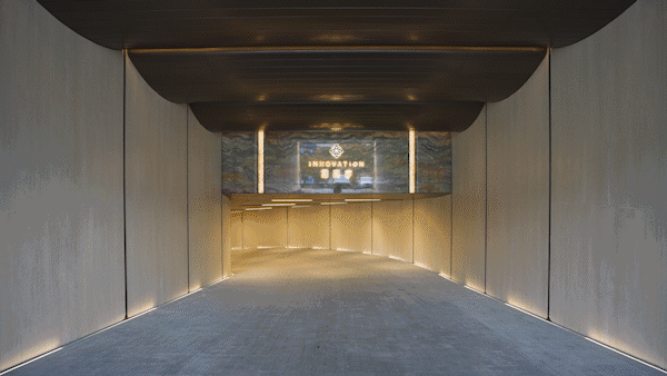 地上空间的美学感受随着车行归家动线也延伸到了地下,招商序的地下车库,不仅精装交付,还提出了 “中央车站”的 概念。