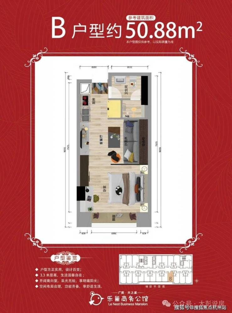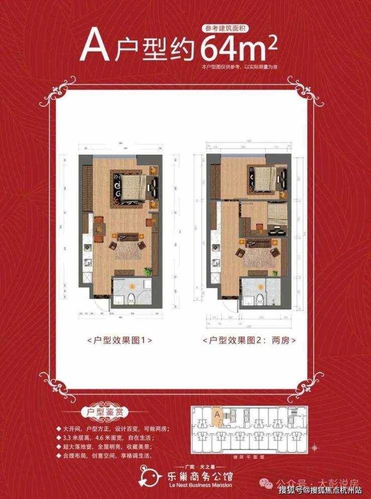 【在售面积】50㎡、64㎡(一室一厅一卫)