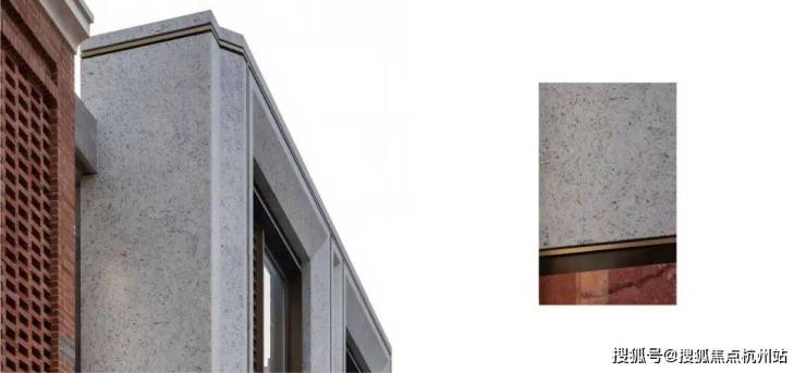 从巴西进口的紫点金麻花岗岩,紫色光彩点缀于金色奢石之上,以古朴温润的质感,嵌入外滩天际,在日光下熠熠生辉、恬静优雅构建出富有地标作品感的高级美学。