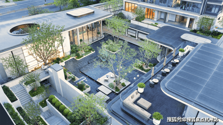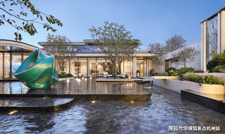 项目园林景观由蓝颂景观设计院打造,借势西侧直距约800米钱塘江的优势,引水入园,并利用公园优势,通过山景渗透,在小区铺展山水诗意画卷。