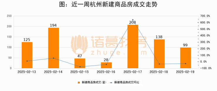 【杭州成交日报】02月19日新房成交99套、二手房253套;涨价房源59套