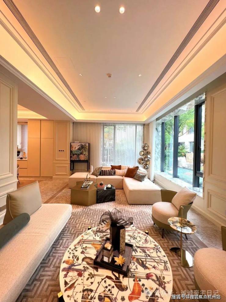 产品设计:采用大面宽短进深布局,首层客厅挑高约 6.8 米,搭配全景落地窗,地下空间层高约 5.5 米,可灵活改造。外立面为全干挂石材,搭配 LOW-E 中空玻璃。