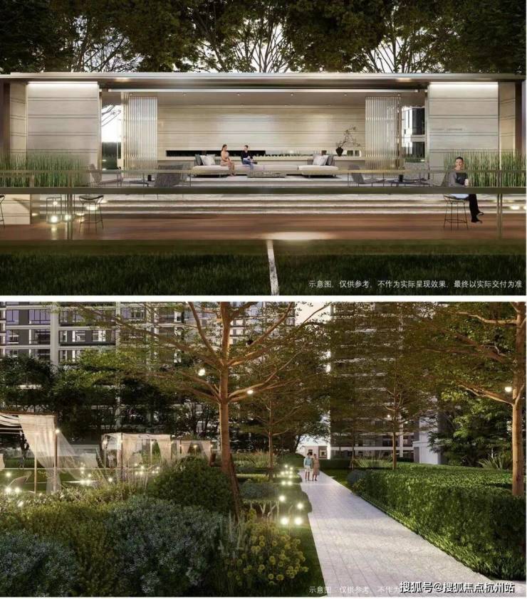 一进城市落客广场,取窗景与漏景结合的传统设计手法,营造从城市与社区无界的氛围感。