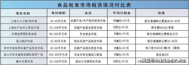 经过对江浙沪周边食品类批发市场调查得知,本项目的规模是最大的达到36万方,其他的批发市场规模在5-26万方之间。就业态来说本项目是全球名优食品供应链基地,分为国际名优进口食品和国内农副产品批发两种,而其他的批发市场业态主要还是国内农副产品批发。