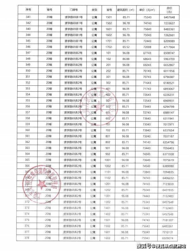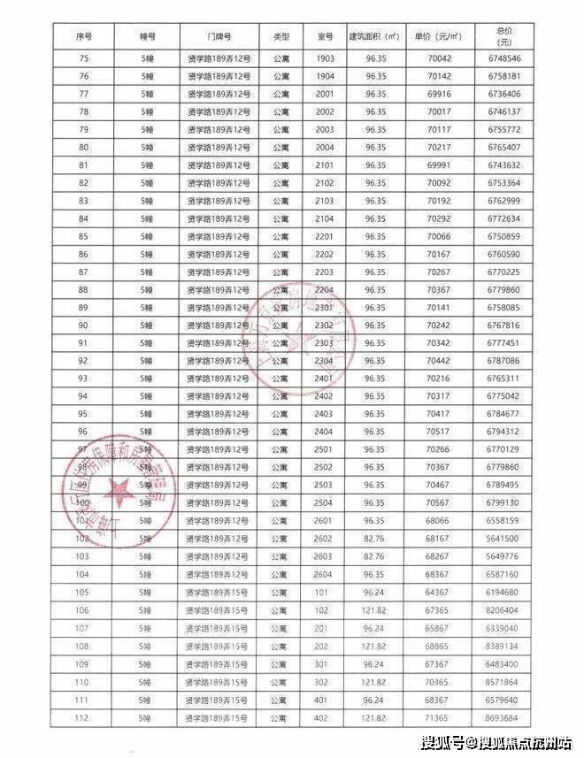 一房一价表