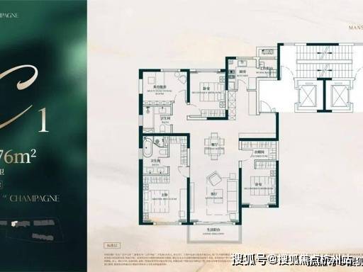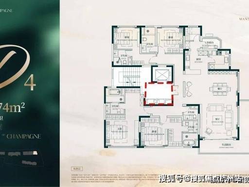 建面约 176㎡ 四房两厅两卫(改善入门奢邸)