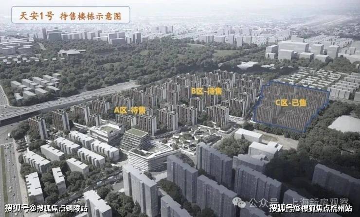 根据天安1号的公布方案来看,将分为A、B、C三个部分,共建设48幢,最高13层的住宅楼,整体容积率为1.94,建筑密度为30%、绿地率35%。