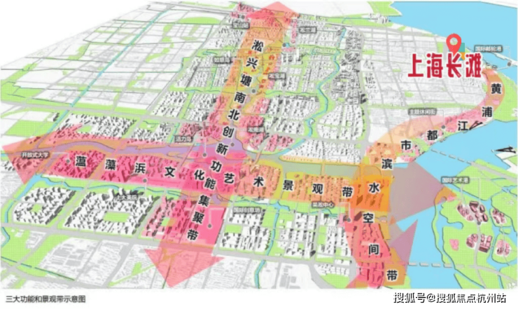 大吴淞地区整体的规划框架是要打造一个标志的“三江交汇”的上海之门,也就是三长江、黄浦江和蕰藻浜。这三江都是具有通航能力的河道,除了能够提供独特的景观价值之外,还能为产业提供很好的航运条件。