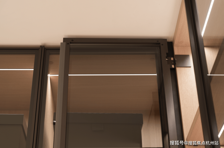极简审美,从背景墙开始一路延展,无边框隐形门,以及简化的金属踢脚线,让立面保持完整如一。