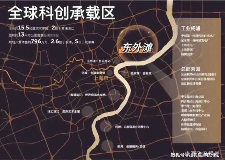 杨浦滨江全长约15.5公里滨水岸线,约2倍于黄浦滨江;规划开发体量约796万方,约2.6倍于前滩,约5倍于陆家嘴。从规划到能级,“滨江3.0”时代,正奔涌而来。