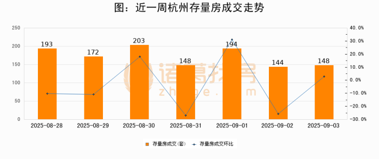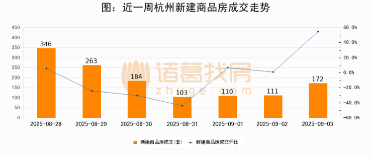 【杭州成交日报】09月03日新房成交172套、二手房148套;涨价房源23套