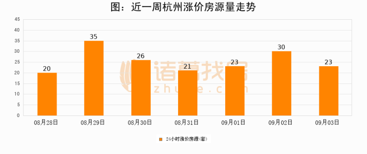 根据诸葛找房数据显示,杭州24小时涨价房源量为23套,较09月02日减少7套,环比下降23.3%。与此同时,涨价房源占比小幅回落,对于购房者来说是一个入市窗口期,购房者可抓住时机入市。