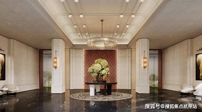 走进大堂与电梯厅,统一的色调与气质也得到了延续。首层大堂中,不仅还会出现独立的下沉庭院,还会有供业主使用的私享会客厅。同样也是奢牌酒店级装标,从不同石材的复合利用,到层高的充分利用,还有弧线设计元素的贯通……设计与施工难度上不断抬升,才有了无出其右的空间效果。