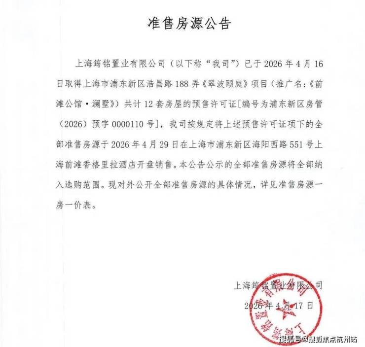 前滩公馆·澜墅官方售楼处咨询与预约公告(2026最新真实版)