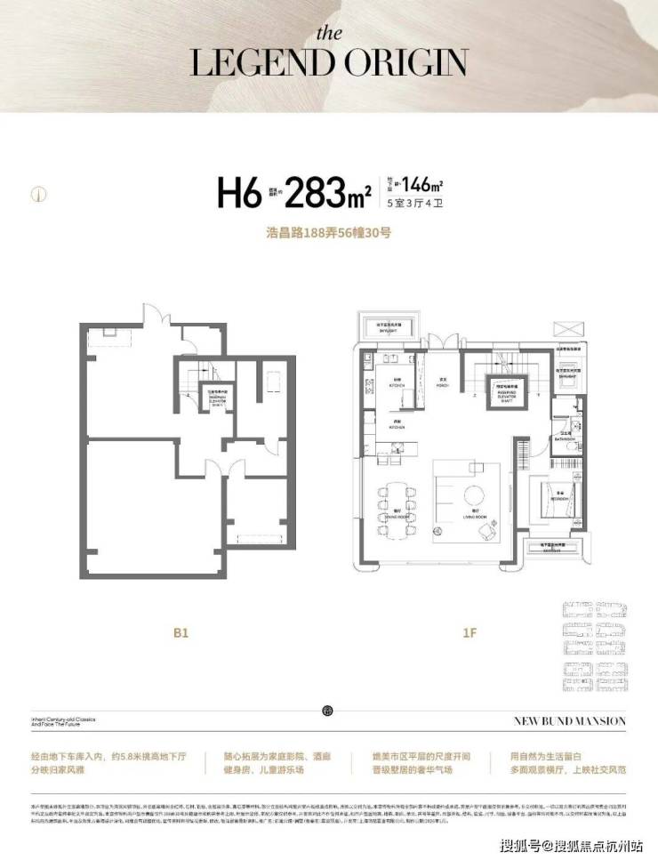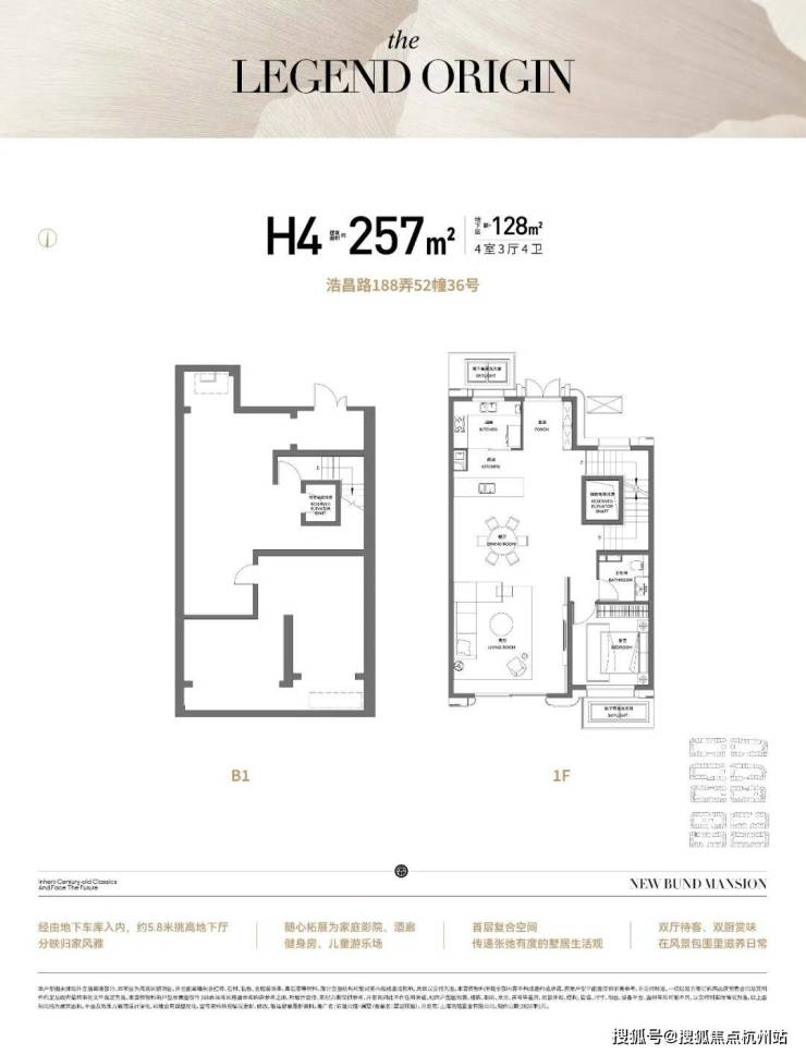 地下层:约5.8米 挑高的地下光厅(土建层高),可随心改造成私人艺术馆、酒廊、家庭影院,在难得一见的高度里,会晤时代大人物。合院独有的“地上+地下”双洄游归家动线,让院墅生活更具尊崇感。