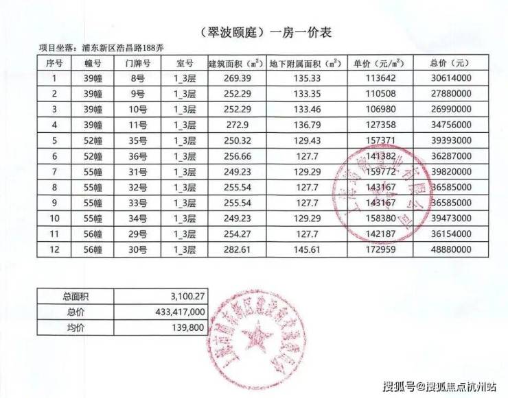 一房一价表