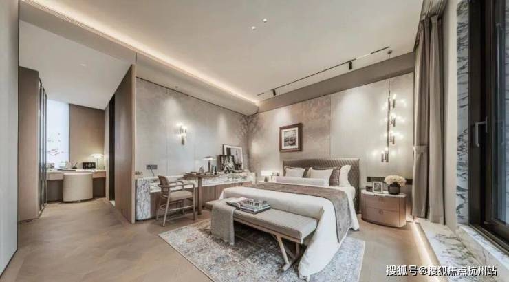 全套房设计,主卧双面采光、带独立衣帽间 + 双台盆卫浴 + 观景小露台,私密尊贵。