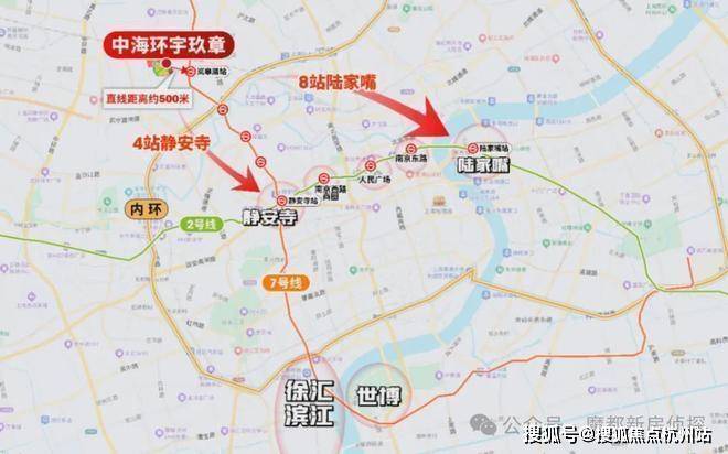 中海·环宇玖章紧邻内环,与静安一线之隔,4站直达静安寺、5站中山公园、7站人广。