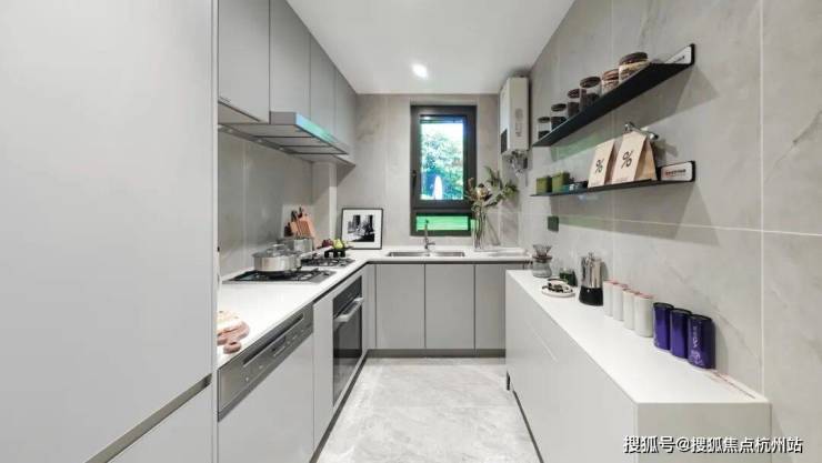 第五个亮点, 宽阔的L型厨房, 两面靠墙,灶台和水槽布置空间充足,实际使用能够满足各类烹饪需求。预约方式:提前拨打官方唯一热线400-8385-95 8,官方咨询热线:400- 8385- 958(一对一官方热情服务),官方预约电话:400 -838-5958,售楼处营销中心:400-8385- 9 58