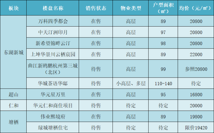 另有余杭的超山、塘栖、仁和也都有200万以内的房源可选择。