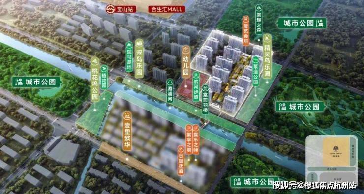 该项目属于宝山站TOD综合体的住宅组成,位于金茂棠前项目的北侧,仅相隔一条河道,项目地块总占地面积约42777.86㎡,容积率2.3,地上总建筑面积约106124.19㎡。