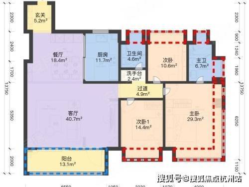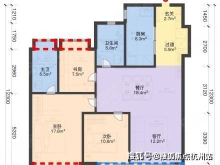 亮点:主卧套房(独立卫浴 + 衣帽间 + 270° 飘窗),三卧室朝南,全房飘窗,适配二孩家庭。