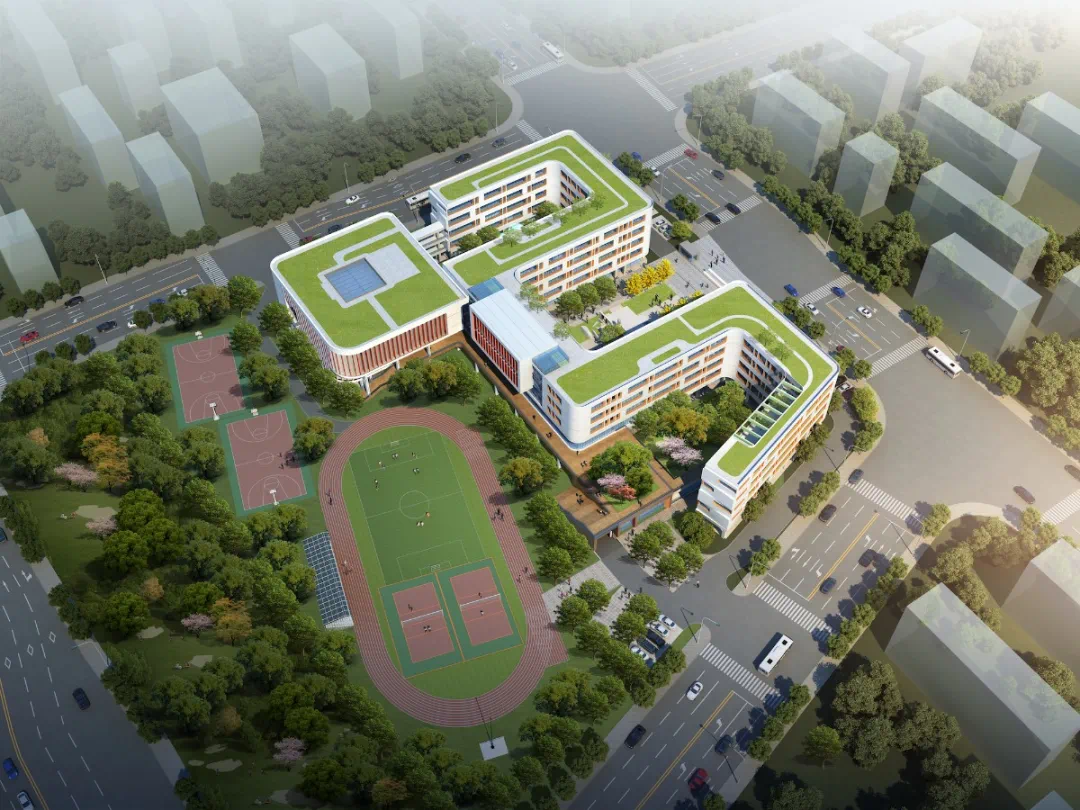 项目北靠同德路,南临源聚路,西接明石路,东至源聚支路。总建筑面积2.6万平方米,含一层地下车库,共有24个班级。