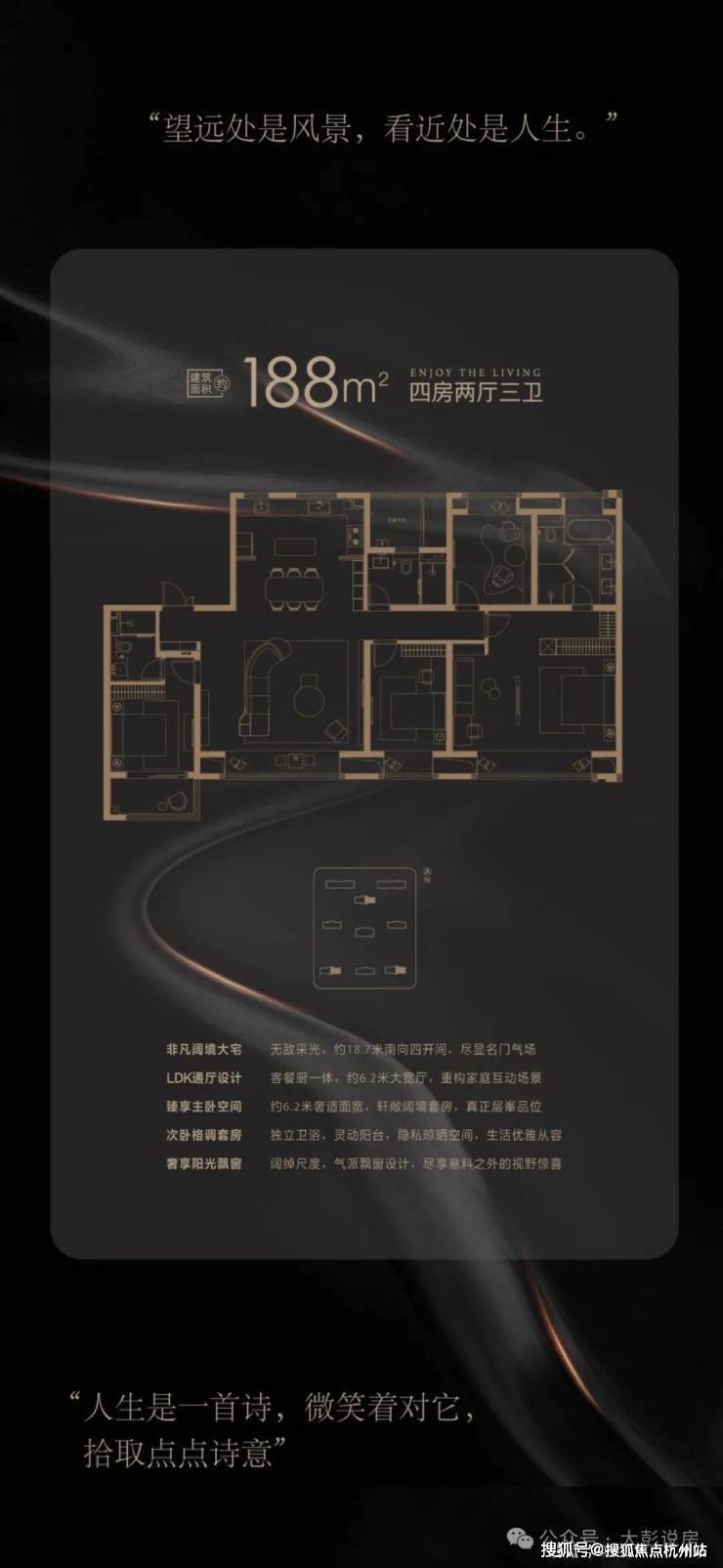 148~236m²全系大平层设计,以奢阔大宅匹配层峯精英,尽显名门本色,鼎奢236m²打造270°环幕转角阳台,成就未来广袤视野。