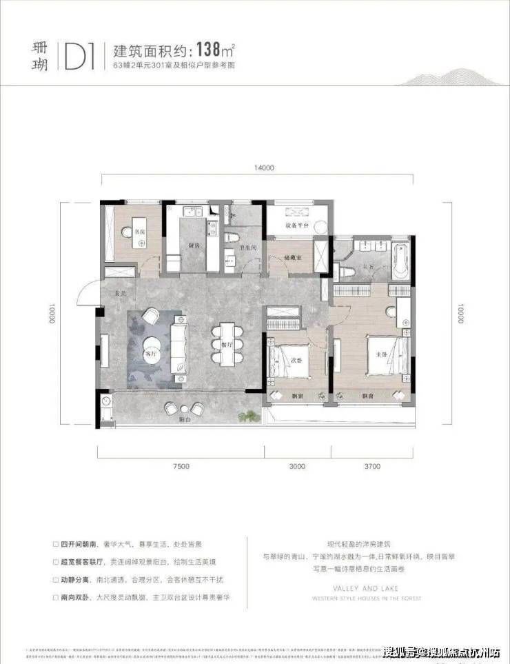 户型点评优势: 双阳台设计,完美匹配湖山美景。客餐厨动线合理,观景飘窗连通了室内室外两重空间。南北通透、分区合理,尤其是储藏室的设计,十分贴心。99㎡的大两居,恰到好处地放大了各个功能区,整体看过去十分舒畅。