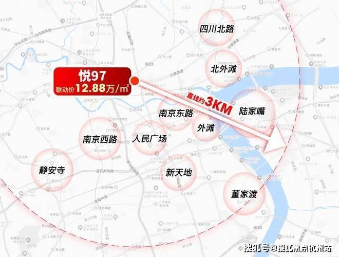 如果不拘泥于步行,视角放大到3公里半径,范围内江涵盖陆家嘴、人民广场、静安寺、南京西路、南京东路、外滩、新天地等城市CBD,上海几乎所有的高能级城市资源都在悦97业主的生活场域之内,这一点也是徐汇滨江难以比拟的!