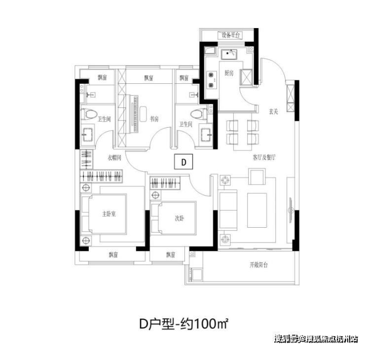 建面约100㎡3房2卫,阳光三房,同等面积更多功能;宽幅南向观景阳台,把居住变成风景;步入式衣帽间,给予生活更多从容。