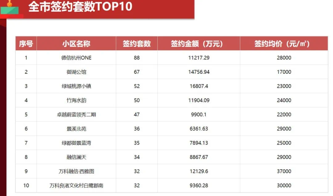 根据5月的小区成交排行榜来看,市区成交较高的是勾庄的德信杭州one,5月签约了88套,均价为27990元/㎡,环比涨幅为0;萧山的御湖公馆签约了67套位列第二,均价16380元/㎡,环比下跌了2.86%。市区成交前十的小区里,有6个小区环比价格企稳或下跌,剩下4个上涨幅度在4%左右,也基本上较为稳定。因此也可以基本判定,目前杭州的二手房市场是稳中略微有降的趋势。