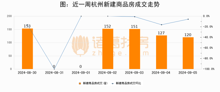 【杭州成交日报】09月05日新房成交120套、二手房196套;涨价房源45套