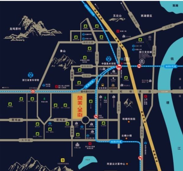交通配套:地铁6号线(在建).杭富城际轻轨(在建).之江大桥.紫之隧道、更有规划彩虹快速路、地铁12号线(规划中)等