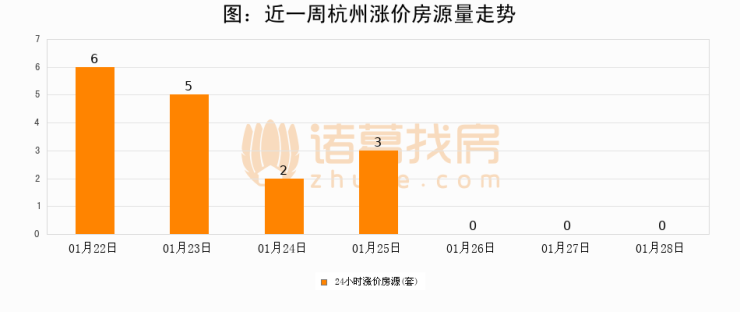 根据诸葛找房数据显示,杭州24小时涨价房源量为0套,较01月27日持平。