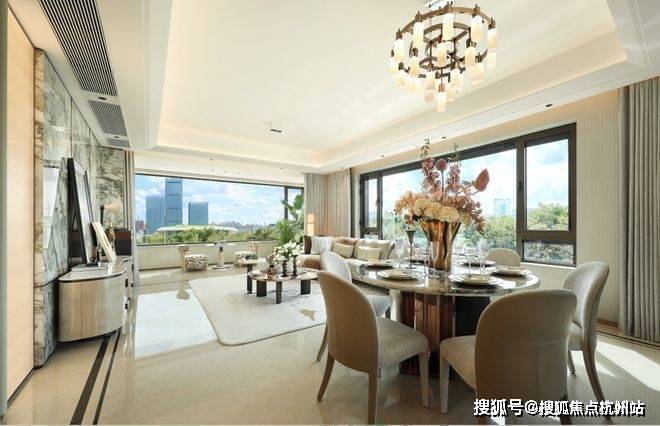 室内同样体现“高浓度奢石”,建面约184㎡户型地面采用保加利亚黑和奥特曼米黄石材,辅以无缝水刀拼花工艺。每一步细节,都在宣告着项目的长期价值。