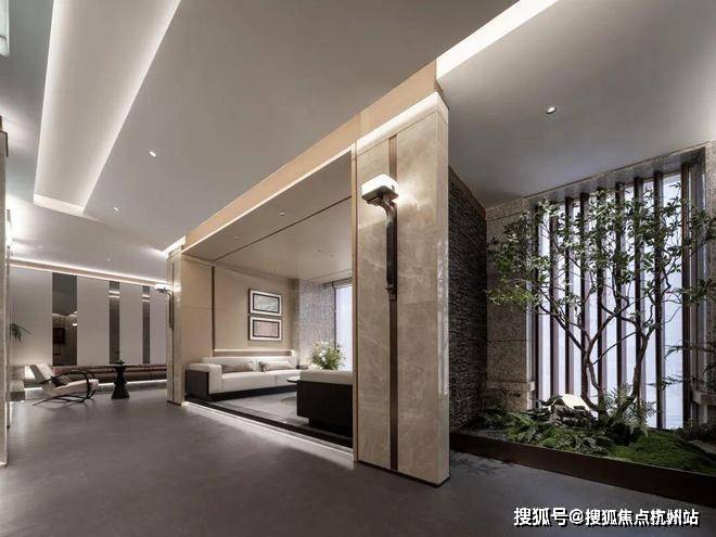 每一块石材的肌理与色泽,都在呼应窗外中央绿地的生机,还原自然的美貌。